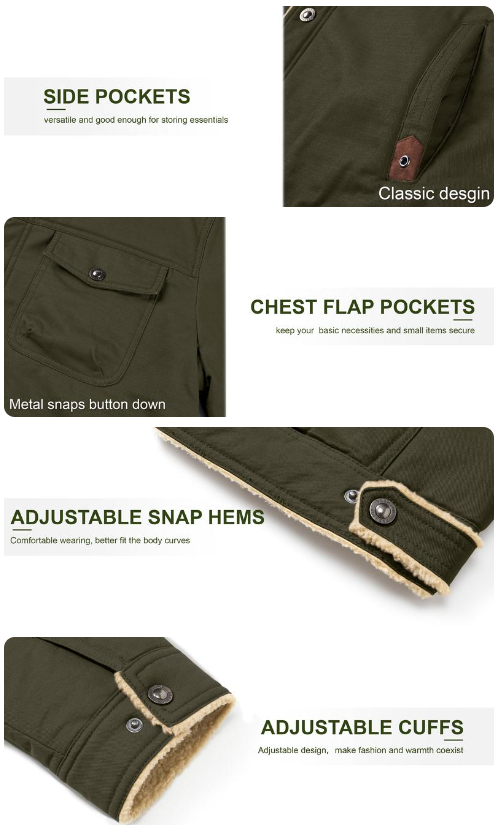 【Premium Cotton Warmth】100% cotton shell with thick cotton sherpa lining delivers exceptional insulation and comfort during winter months